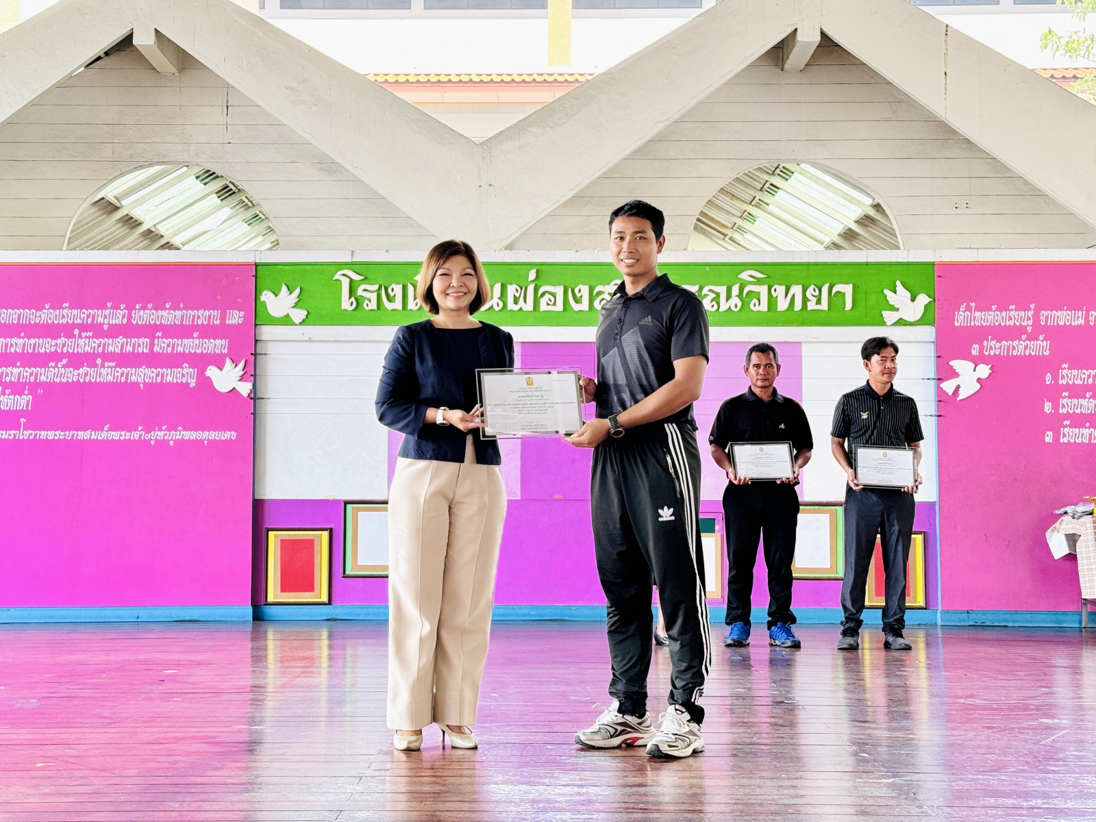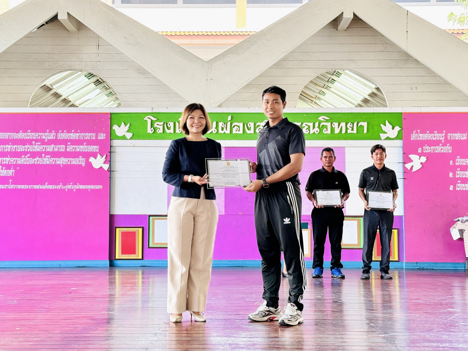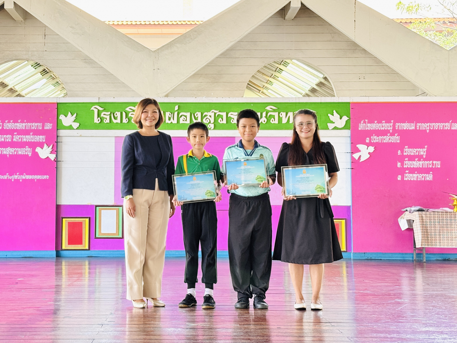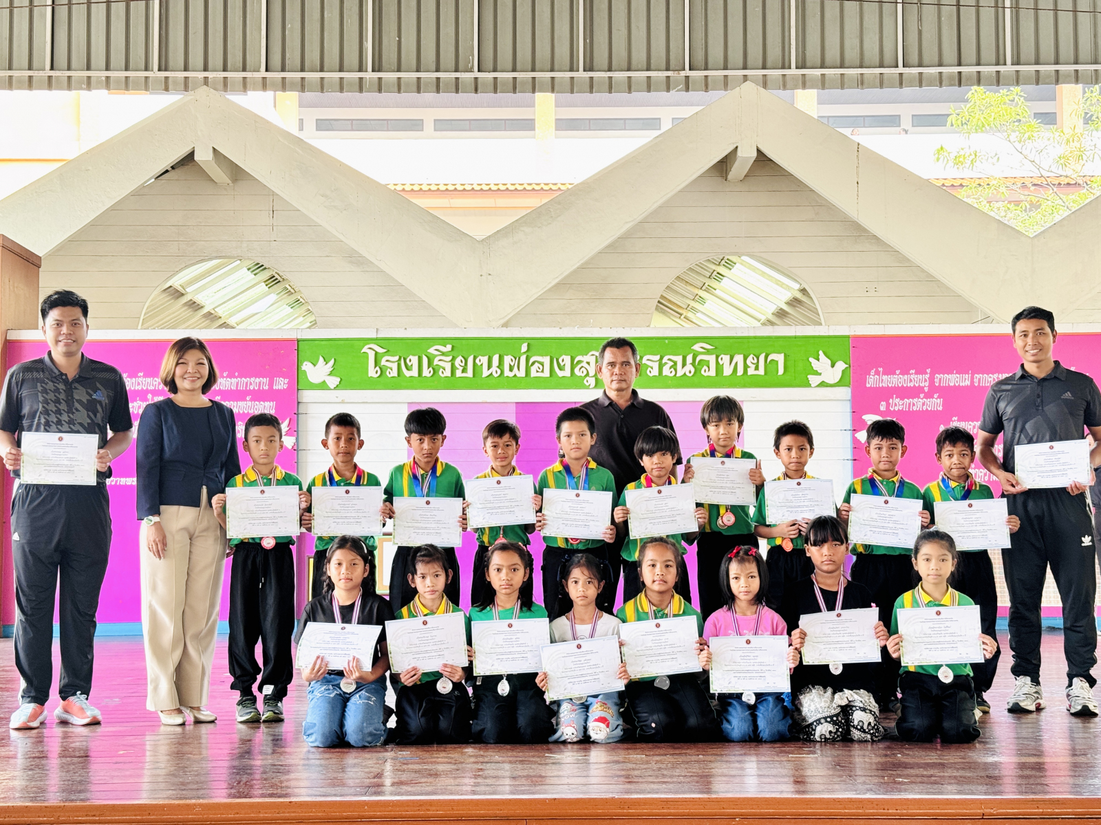 วันที่ 13 กุมภาพันธ์ 2569 นางสาวปดิวรัดา ผ่องสุวรรณ ผู้อำนวยการโรงเรียนผ่องสุวรรณวิทยา ได้มอบเกียรติบัตรให้กับครูดีเด่น , นักเรียนและครูผู้ฝึกซ้อมการแข่งขันทักษะทางวิชาการและประกวดสิ่งประดิษฐ์นักเรียนโรงเรียนเอกชน ระดับชาติ (ภาคกลาง) , นักเรียนที่แข่งขันกรีฑา และ นักเรียนที่แข่งขันฟุตบอล