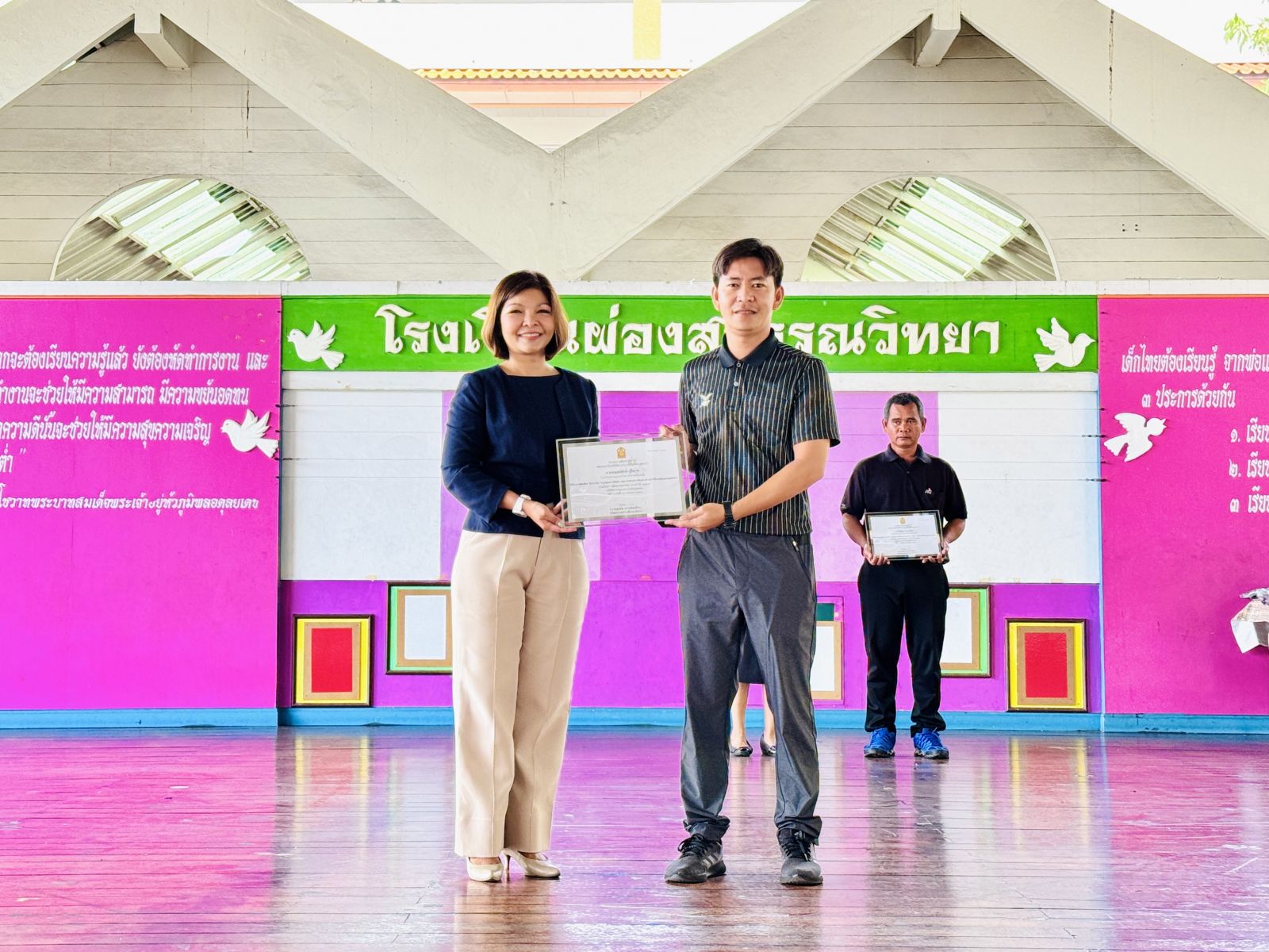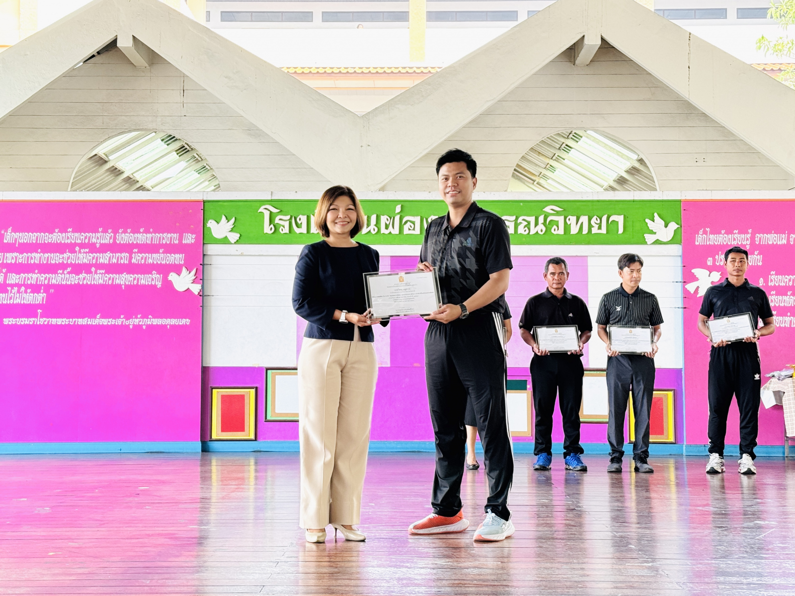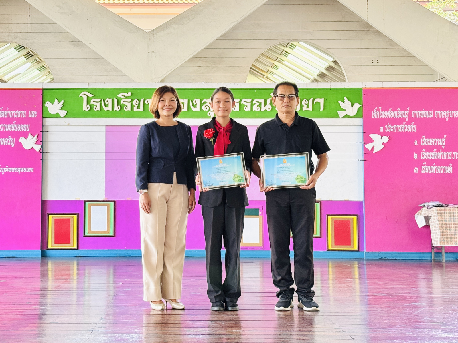 วันที่ 13 กุมภาพันธ์ 2569 นางสาวปดิวรัดา ผ่องสุวรรณ ผู้อำนวยการโรงเรียนผ่องสุวรรณวิทยา ได้มอบเกียรติบัตรให้กับครูดีเด่น , นักเรียนและครูผู้ฝึกซ้อมการแข่งขันทักษะทางวิชาการและประกวดสิ่งประดิษฐ์นักเรียนโรงเรียนเอกชน ระดับชาติ (ภาคกลาง) , นักเรียนที่แข่งขันกรีฑา และ นักเรียนที่แข่งขันฟุตบอล
