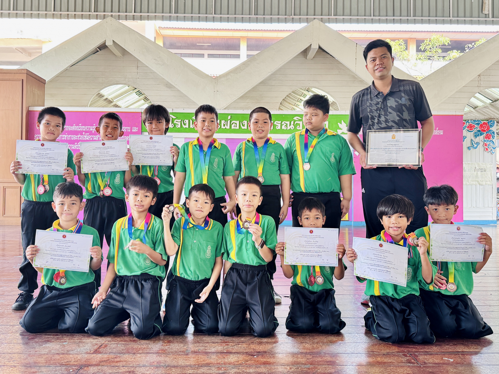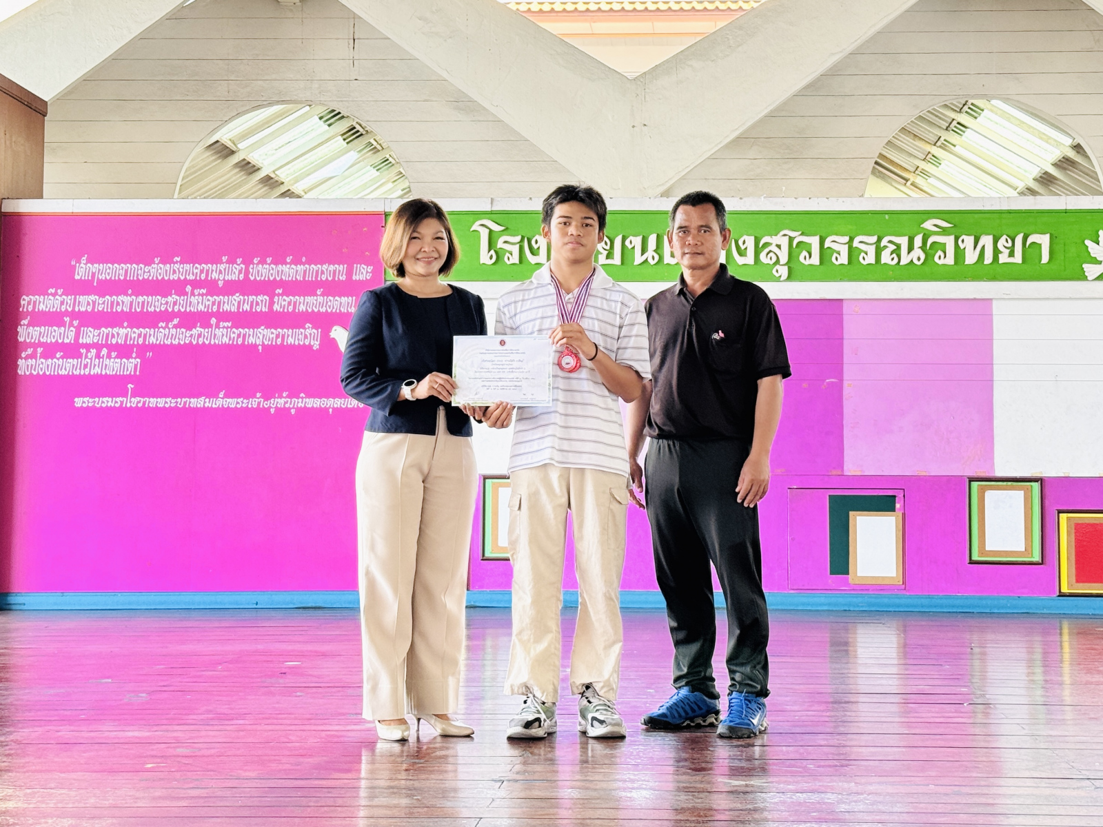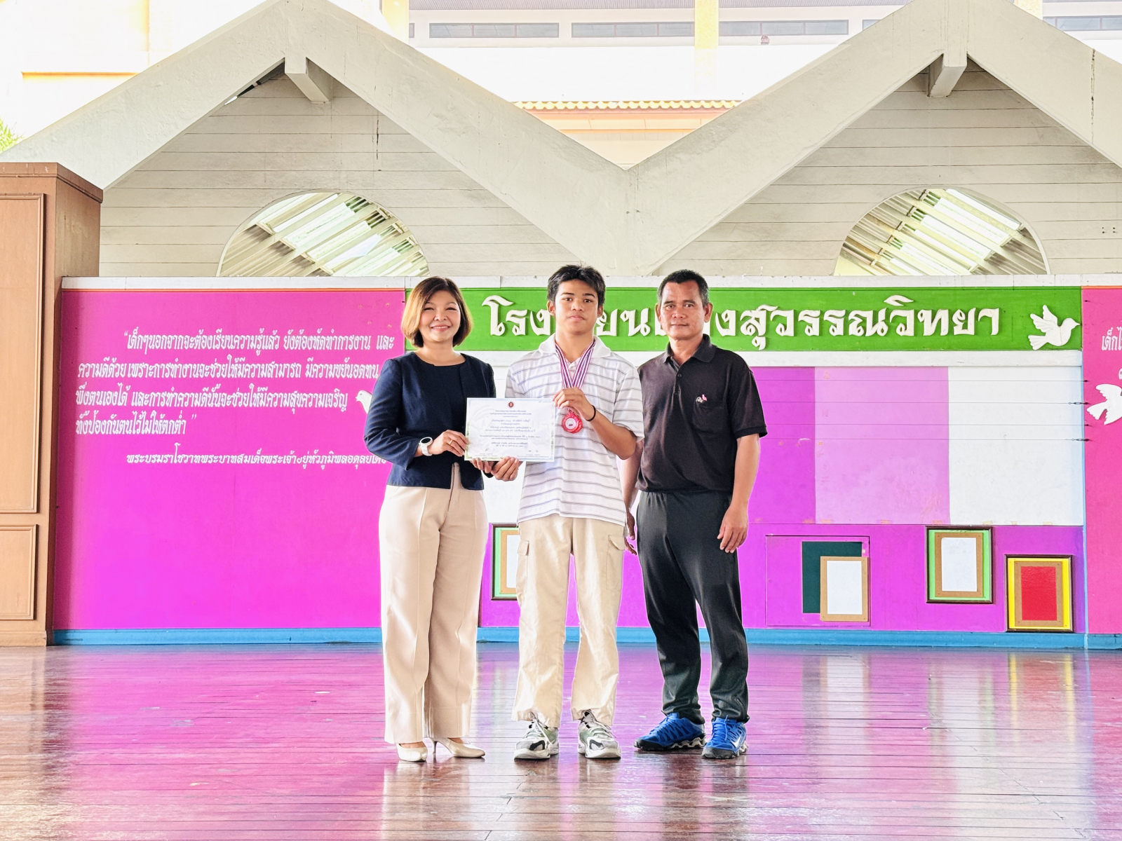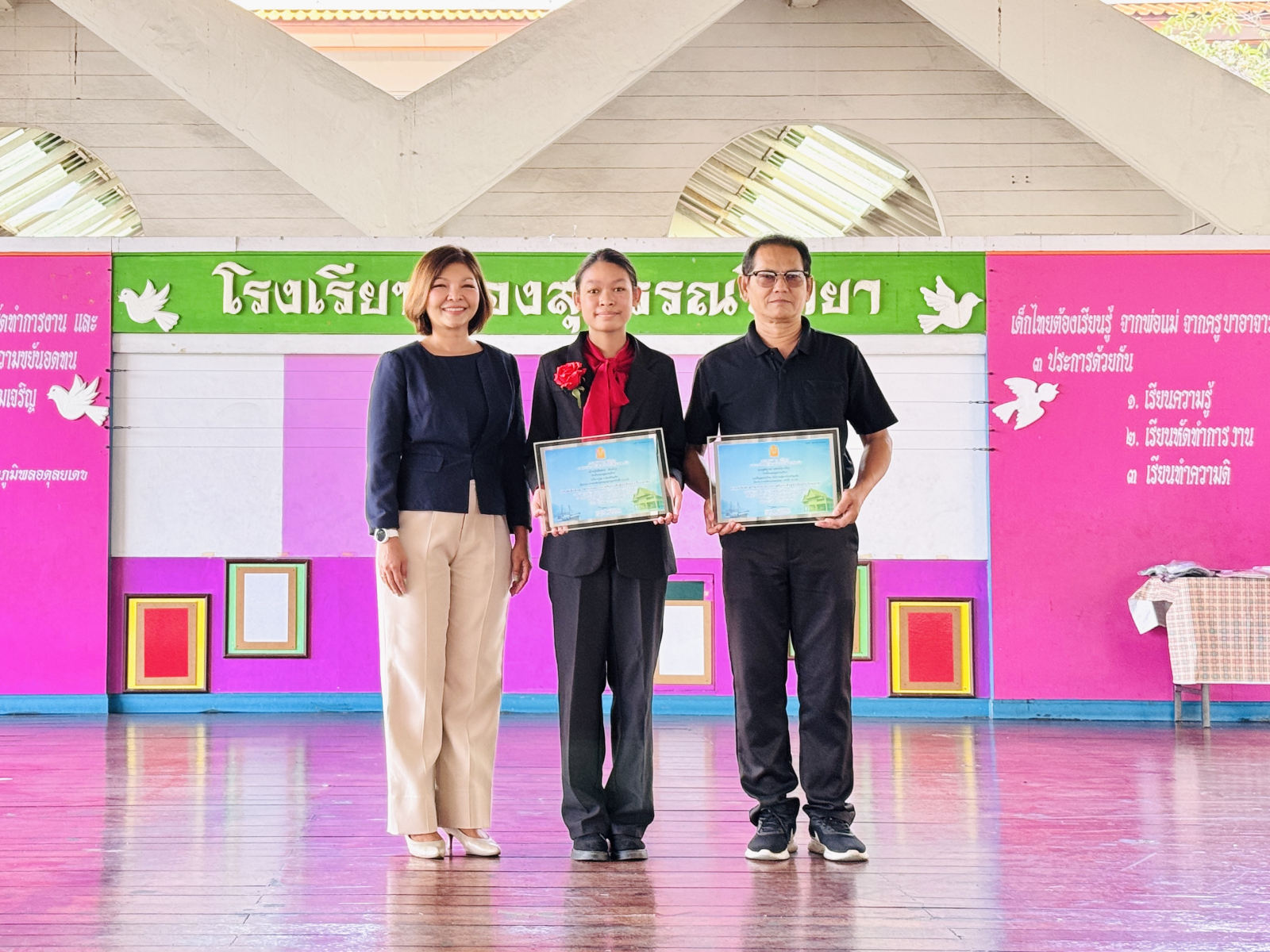 วันที่ 13 กุมภาพันธ์ 2569 นางสาวปดิวรัดา ผ่องสุวรรณ ผู้อำนวยการโรงเรียนผ่องสุวรรณวิทยา ได้มอบเกียรติบัตรให้กับครูดีเด่น , นักเรียนและครูผู้ฝึกซ้อมการแข่งขันทักษะทางวิชาการและประกวดสิ่งประดิษฐ์นักเรียนโรงเรียนเอกชน ระดับชาติ (ภาคกลาง) , นักเรียนที่แข่งขันกรีฑา และ นักเรียนที่แข่งขันฟุตบอล