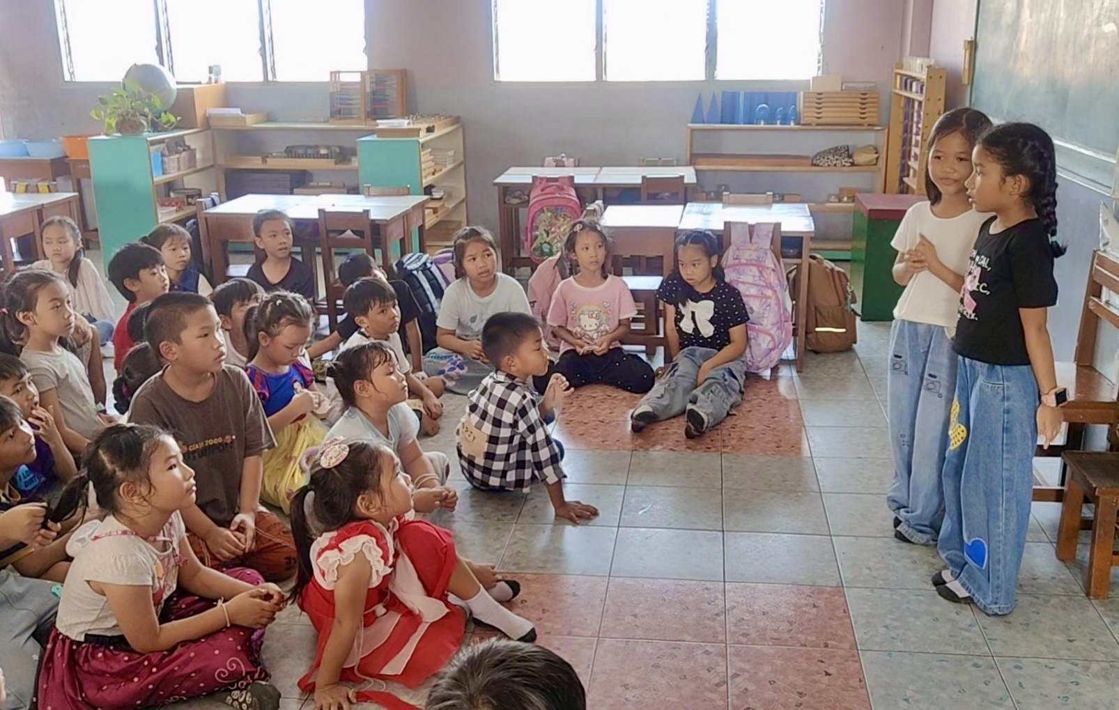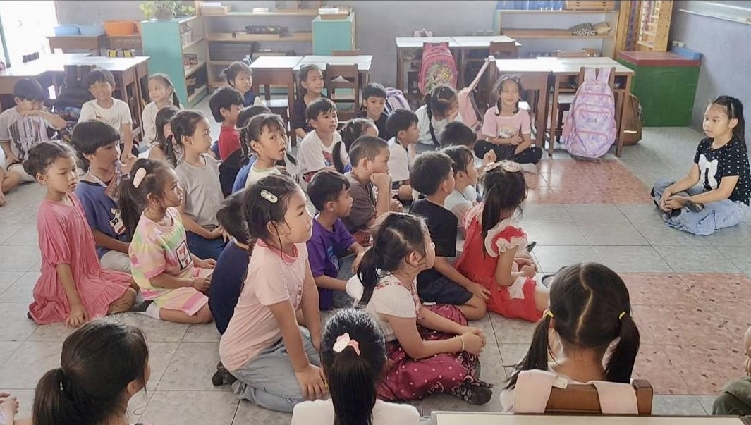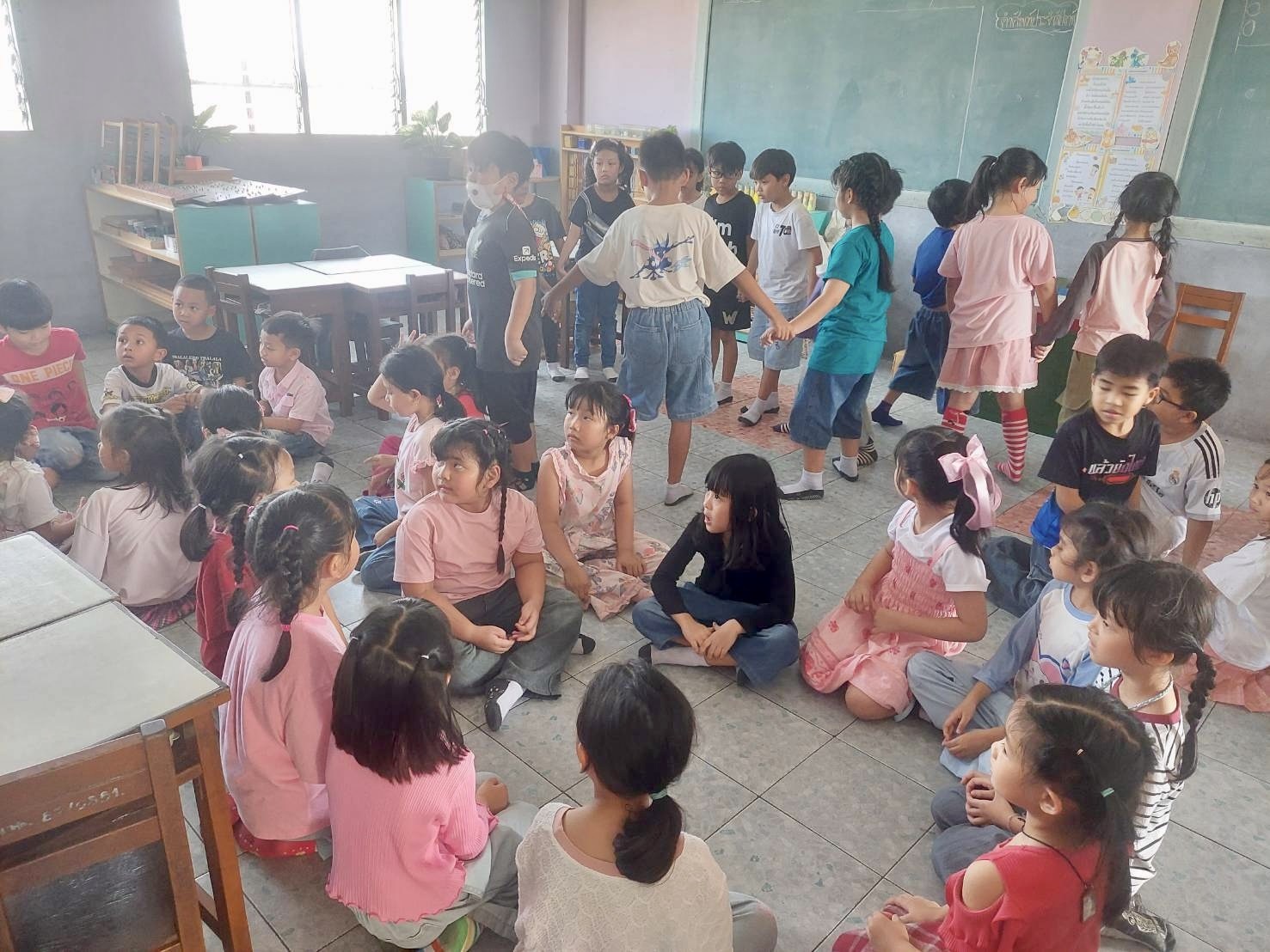 พี่ๆ ป.1 ต้อนรับน้องๆ อนุบาล 3 อย่างอบอุ่น ทั้งพาทัวร์ห้องเรียน แนะนำอุปกรณ์ และเล่าเรื่องสนุกๆ ให้น้องได้ฟัง เป็นการเตรียมความพร้อมทั้งกายและใจก่อนเลื่อนชั้นเรียนอย่างเป็นทางการ